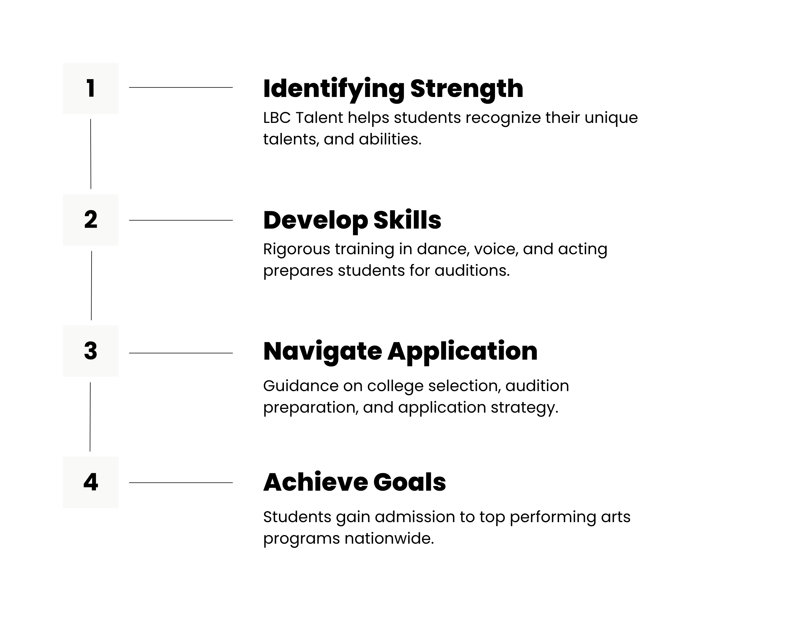 “Training through programs by LBC Talent was one of the best decisions I could’ve made as a growing artist. The dance classes were top notch. The vocal lessons were tailored specifically to my voice type and helped me strengthen my confidence and technique. I learned exciting and rigorous material that pushed me out of my comfort zone and helped me to start exploring who I was as an artist".